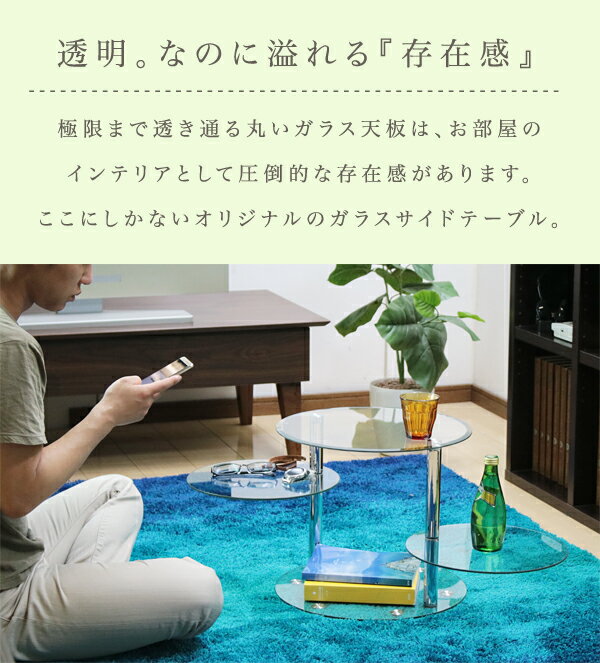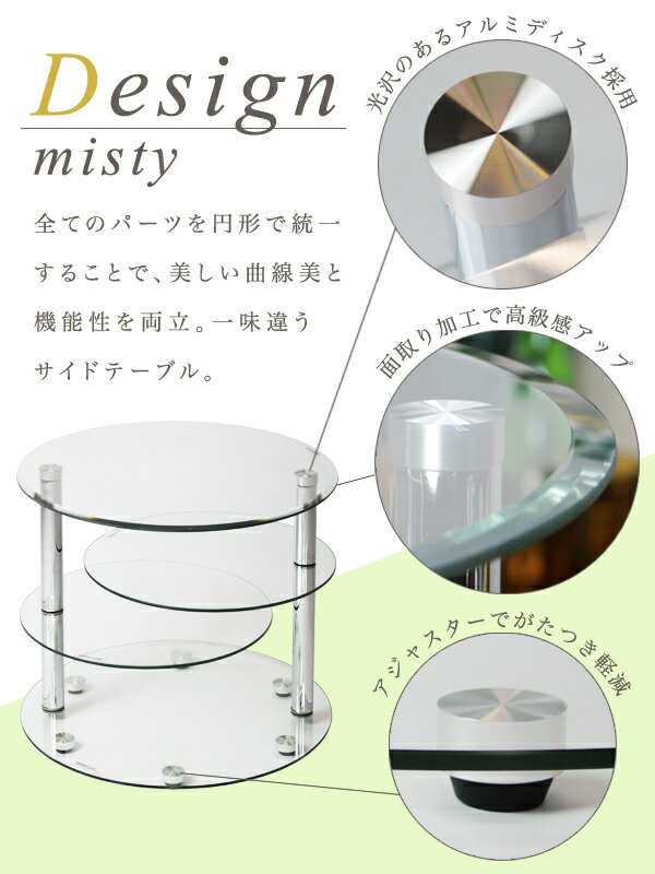 サイドテーブル ガラス 棚付き MST-4030 店舗 丸 円形 おしゃれ 調節 小さい サブテーブル 直径40 高さ 36cm ラウンドテーブル 強化ガラス ディスプレイ リビング 一人暮らし 送料無料 RI-S5